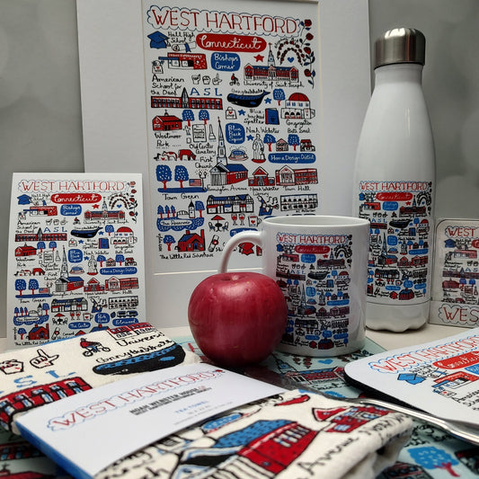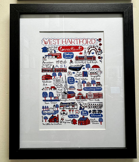 West Hartford is celebrated in a new and unique way with the whimsical artwork of Julia Gash. This iconic print illustrates our community's most notable locales and symbols in a fresh, colorful style.