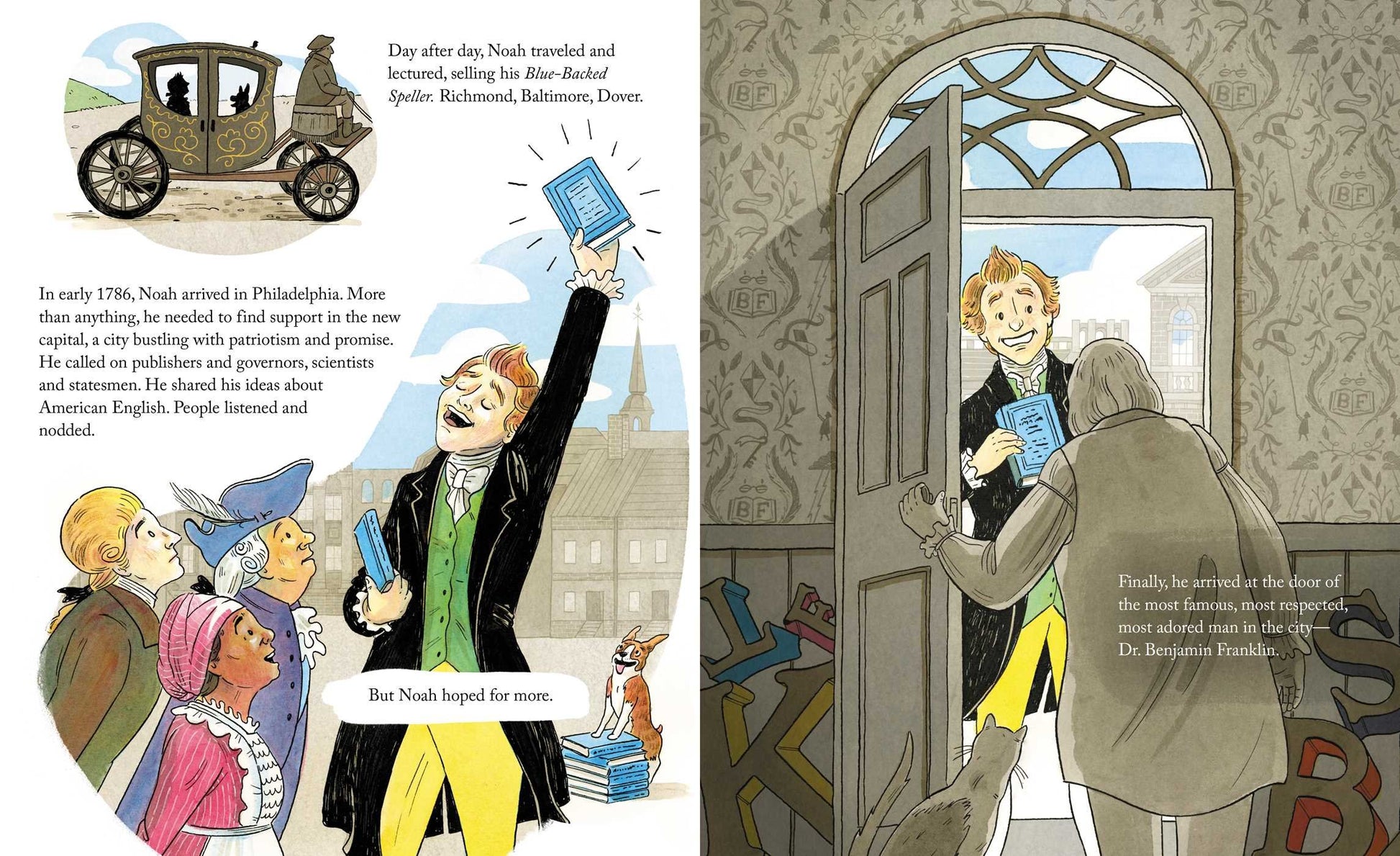 In 1786, Ben Franklin, at age eighty, and Noah Webster, twenty-eight, teamed up. Their goal? Make English easier to read and write. But even for great thinkers, what seems easy can turn out to be hard.