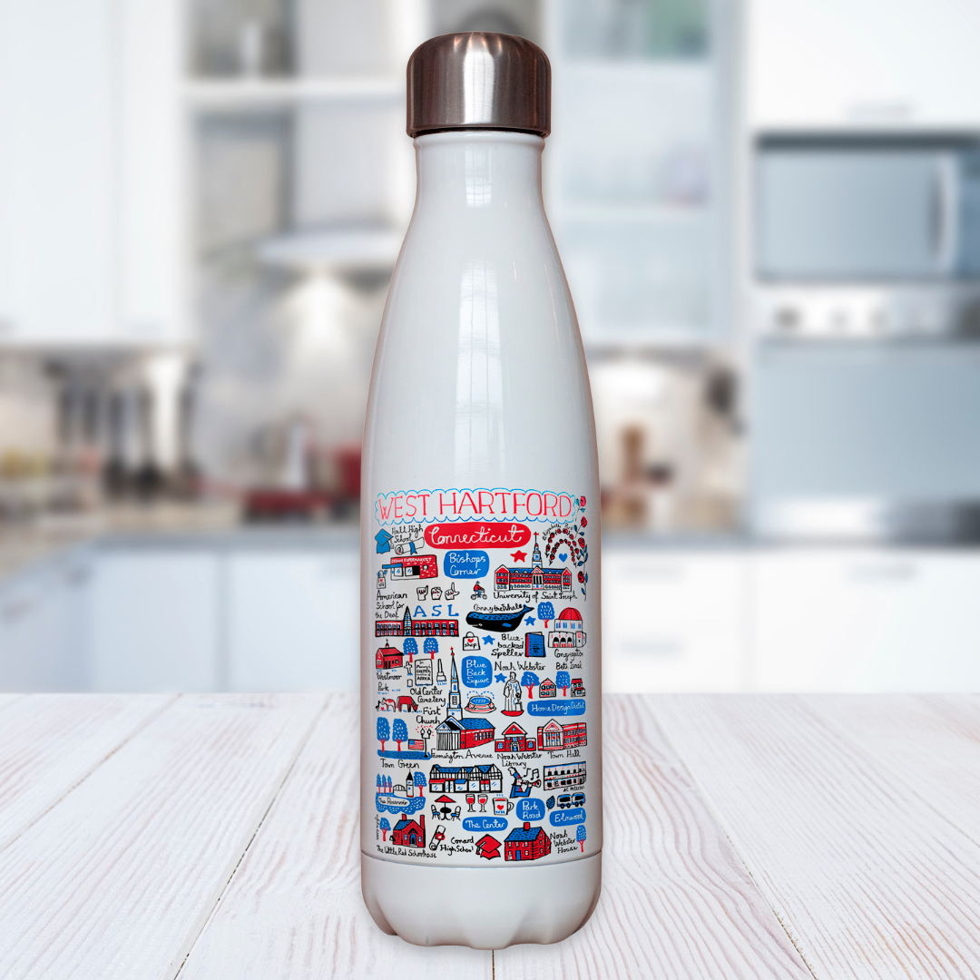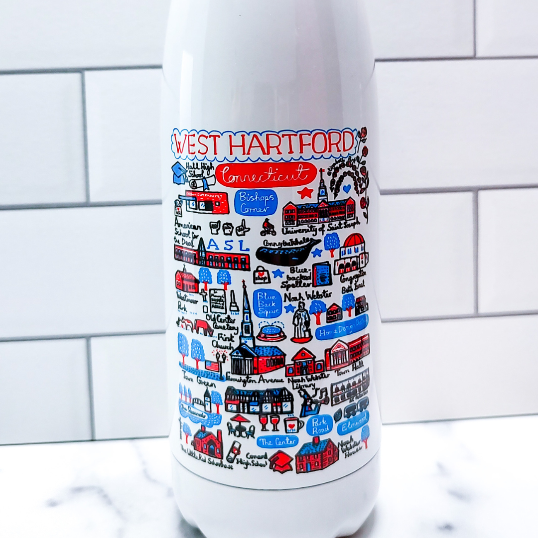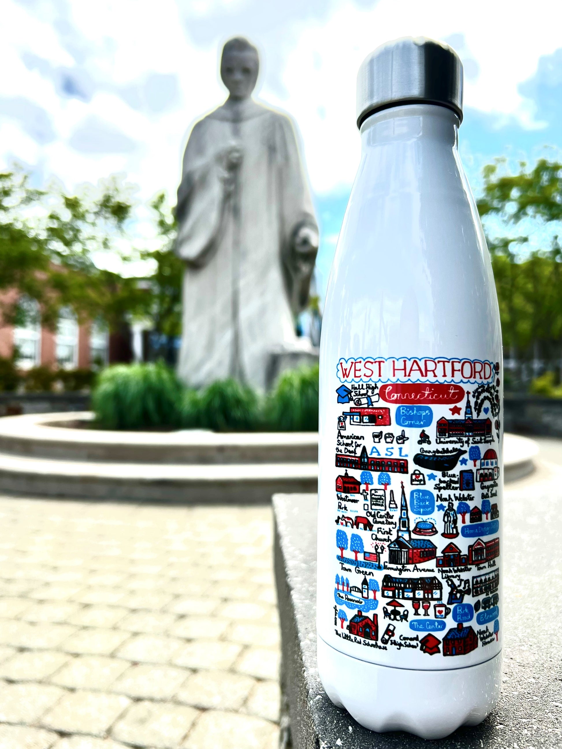 20 oz. aluminum Swell©-style water bottle. Show your town pride and love of West Hartford with this unique item. You’ll turn heads every time you take a swig out of this colorful water bottle – and you’ll enjoy examining the details too!