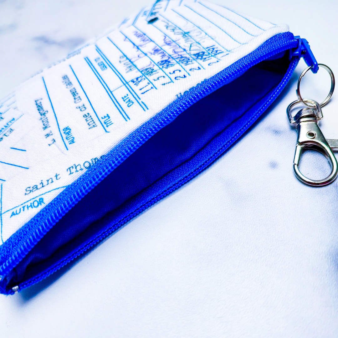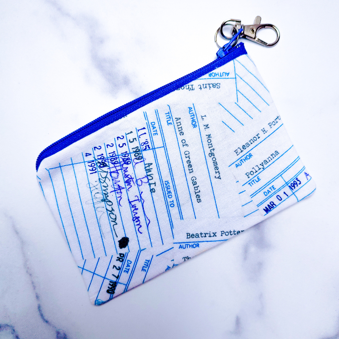 Handmade zippered pouch by Melissa Thom. Large size measures 9.25x7.5, Medium measures 8.5x5.5, Small measures 5.25 x 3.75.