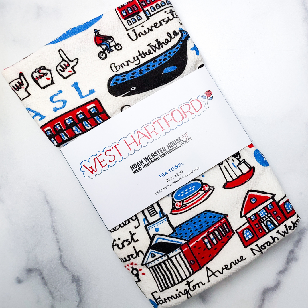 Screen printed tea towels, opens to 18″ x 22″ unfolded. Show your town pride and love of West Hartford with this unique gift. Charming artwork from Julia Gash printed on this hand towel is sure to remind you of why you love West Hartford – every time you wash your hands!
