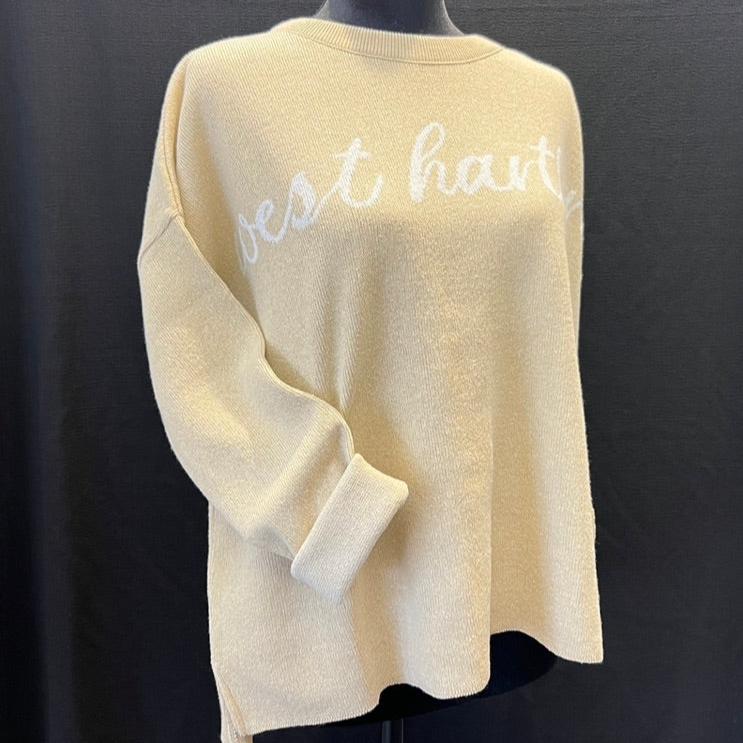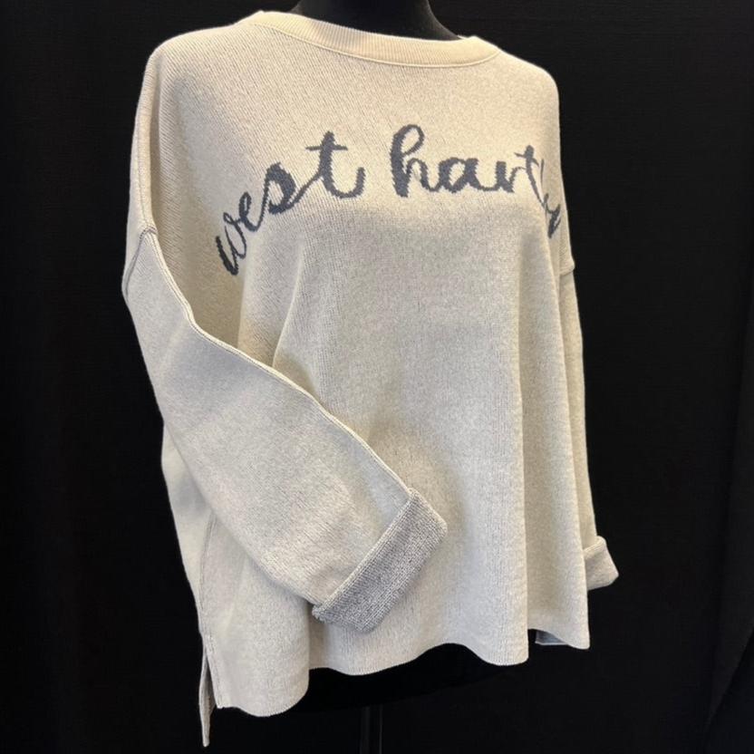 These relaxed fit cotton poly blend sweaters are lightweight and perfect for spring, fall and cool summer nights. Available in two color styles: natural with jean blue script or charcoal with natural script. The high-low cut is a generous and comfortable fit. Can be laundered in washer and dryer.